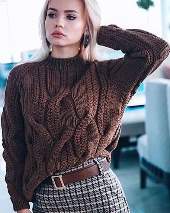 Стильный свитер можно носить с короткими юбками, юбкой-карандаш, джинсами, брюками.
