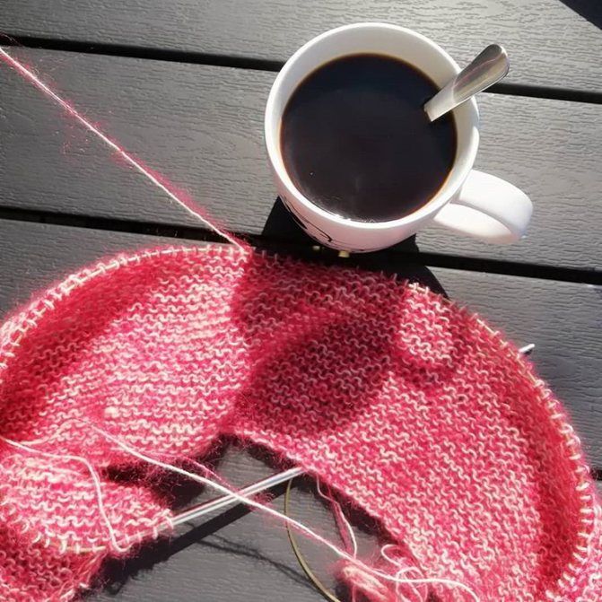 Связать платочной вязкой деталь кофты или кардигана можно двумя спицами, а шапку или шарф-снуд лучше вязать круговыми спицами.