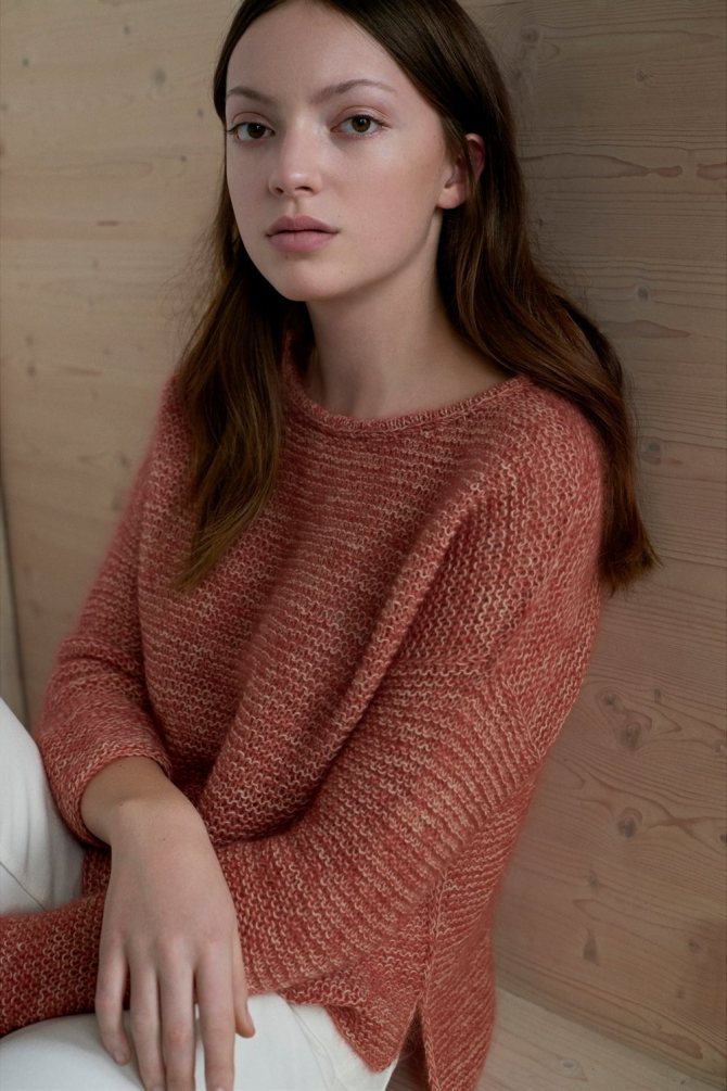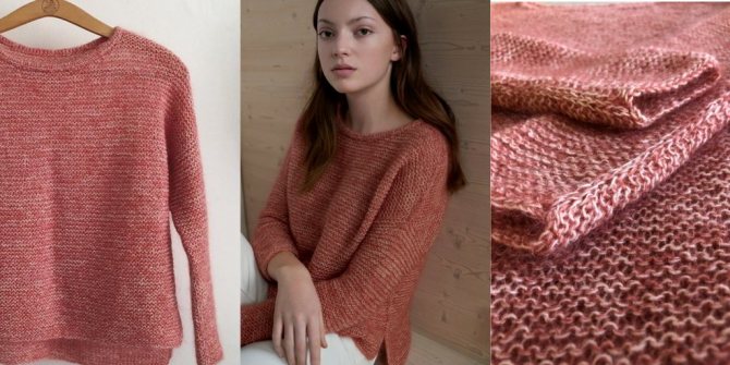 Материалы для вязания стильного свитера платочной вязкой: