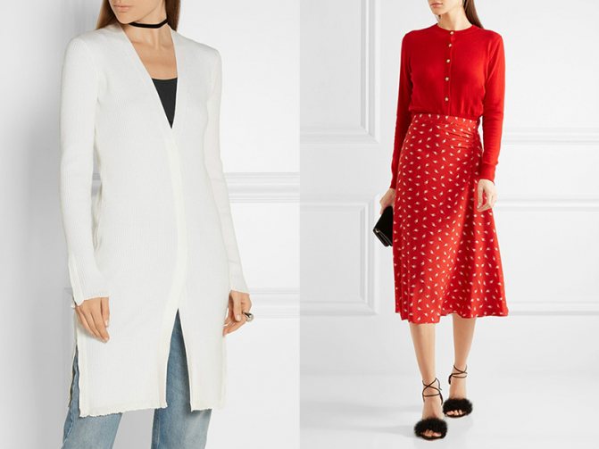 - Классические модели кардигана создадут стильный ансамбль с юбкой с завышенной талией.