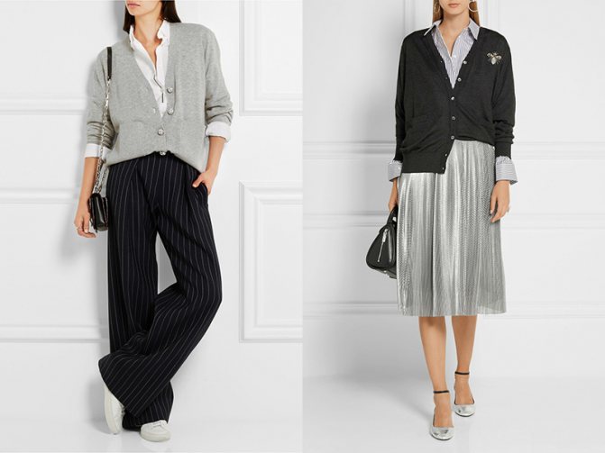 - Не рекомендуется носить кардиган с костюмной парой.