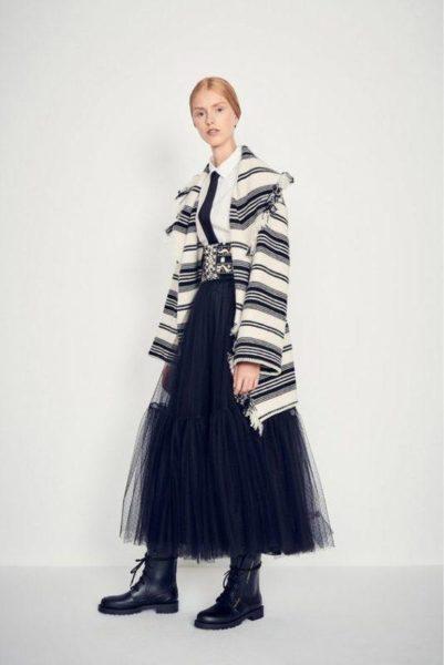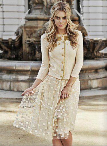 - Многоярусную пышную юбку прекрасно дополнит строгий и укороченный в стиле Коко Шанель.