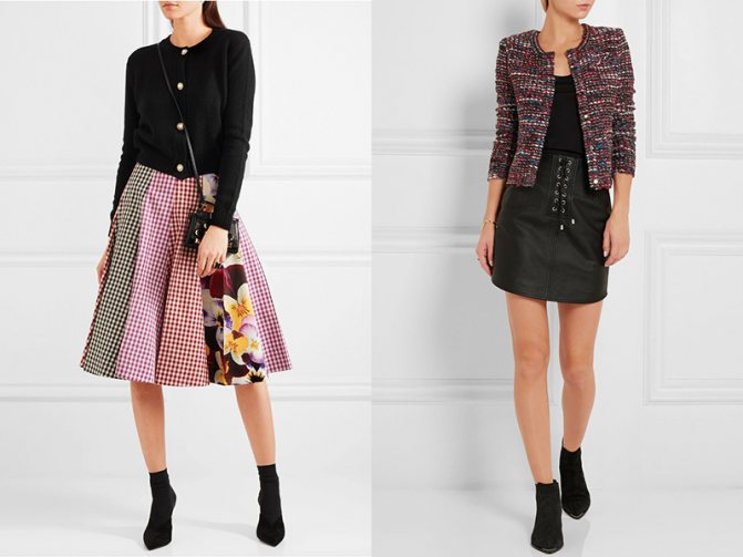 - Укороченные и средней длины, также можно сочетать с такой юбкой.