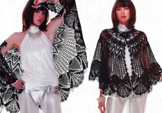 Вниманию рукодельниц роскошный черный воротник, прикрывающий плечи. Свяжем привлекательную модную пелерину крючком в два этапа со схемами и описанием.