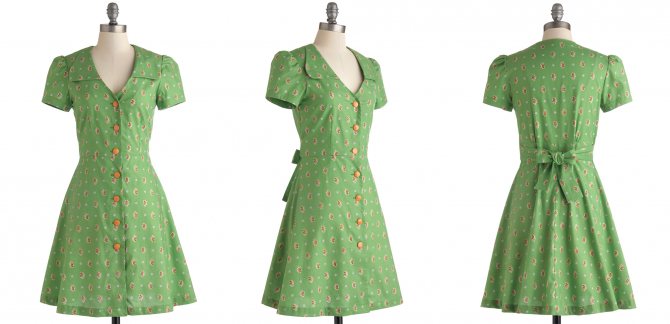 Припуски по всем сторонам деталей – 1,5 см, по низу платья – 4 см.